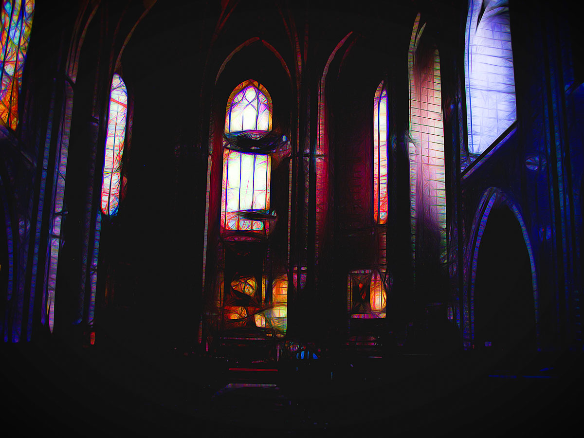 Et en bonus : j’ai tenté une Visite virtuelle avec Topaz Glow : La basilique St Saturnin de Toulouse.