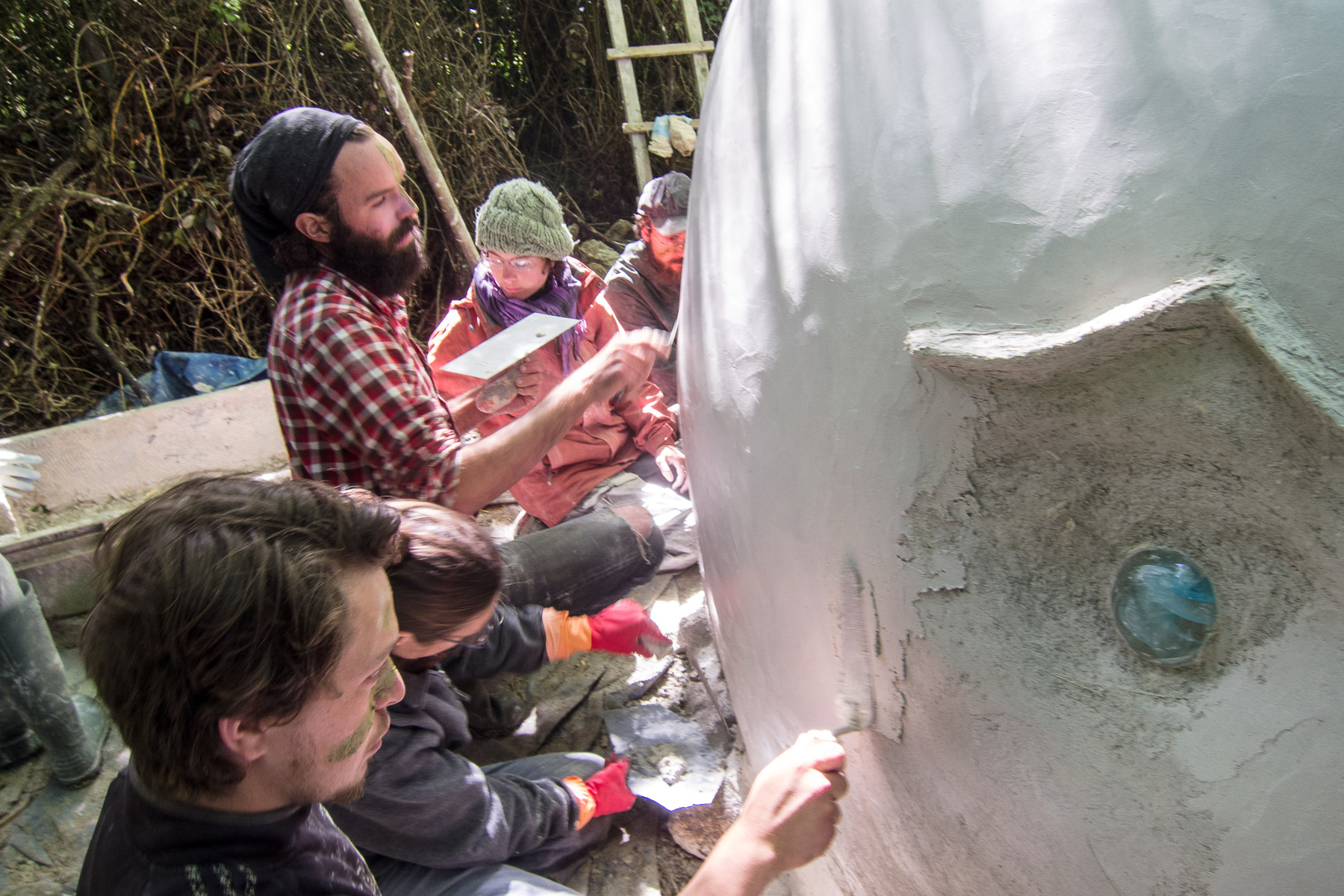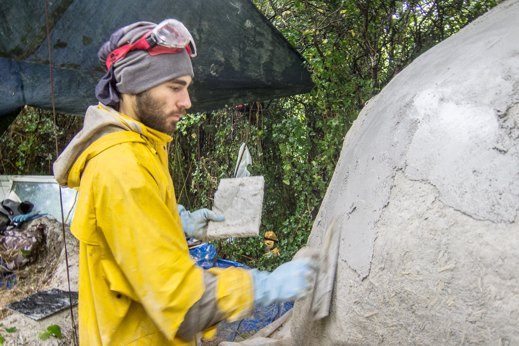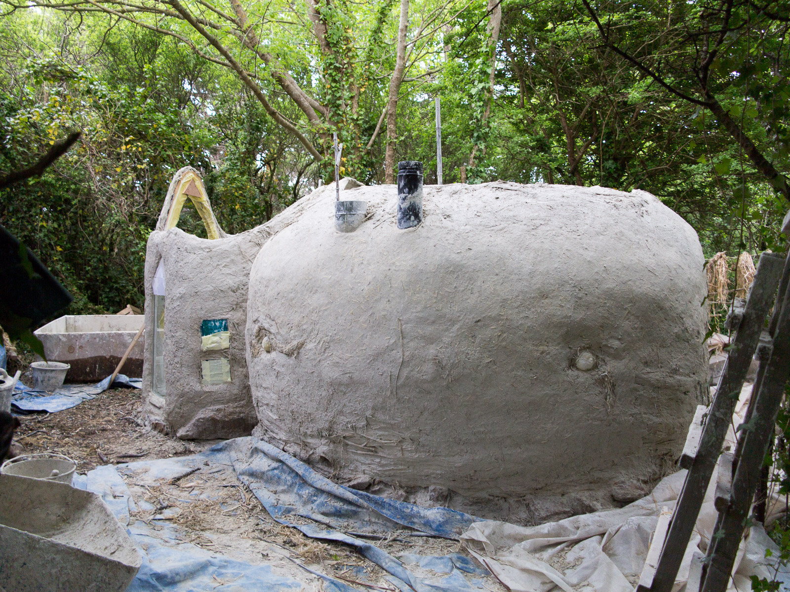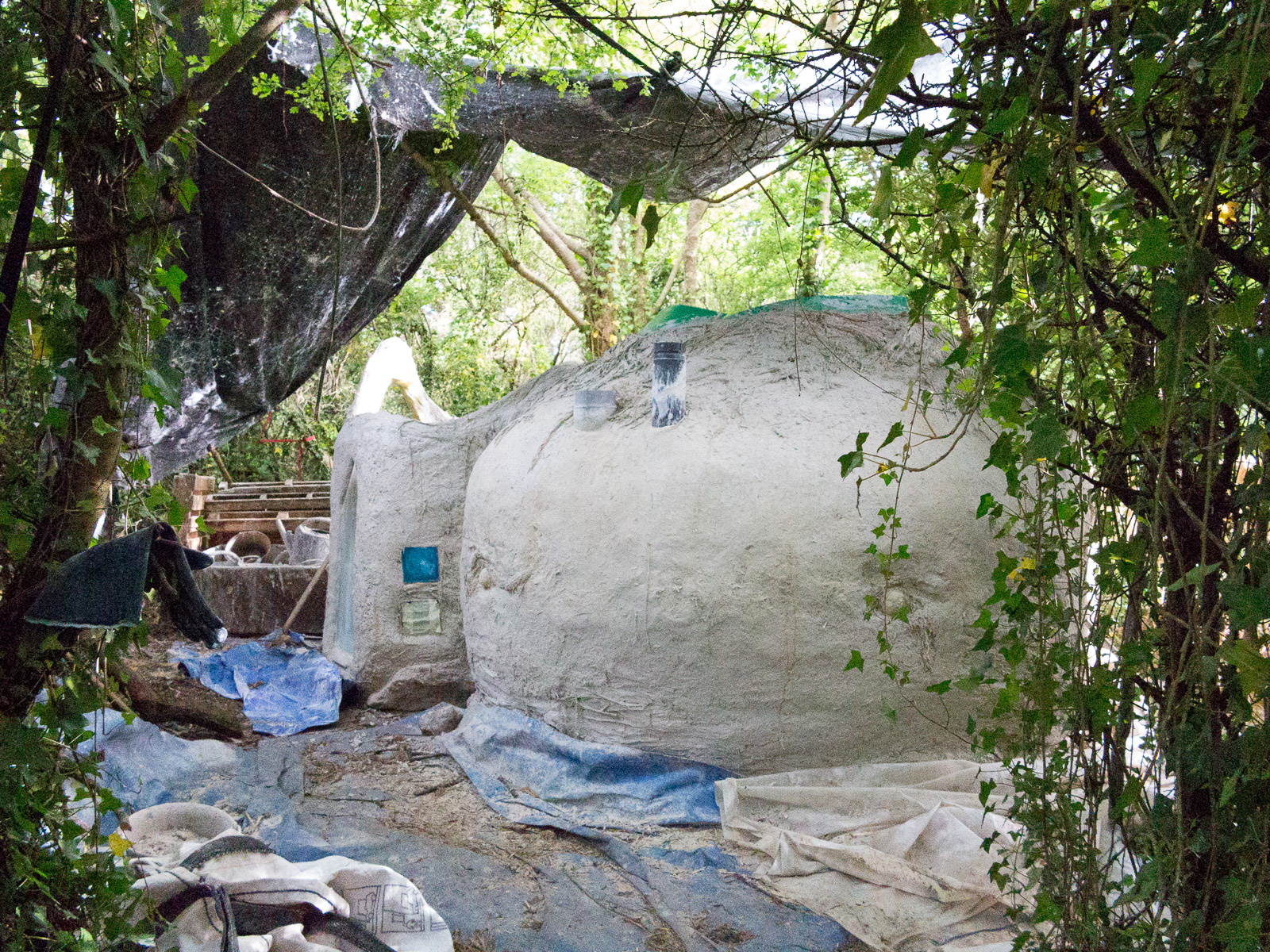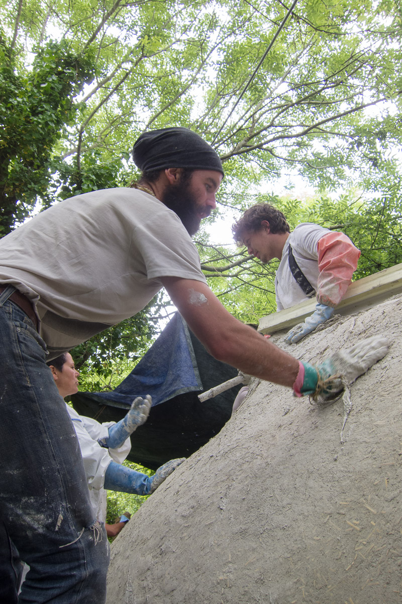 Les kerterres sont des construction dôme, invente par Evelyne Adam qui a fait plusieurs expériences avant de maîtriser ces constructions… Celles la sont donc un chaux et chanvre (avec un peu d’argile pour la cheminée, on peux avec juste 2 personnes construire un joli habitat, solide et agréable (a 20 on est plus rapide, bien que souvent on se marche sur les pieds…)