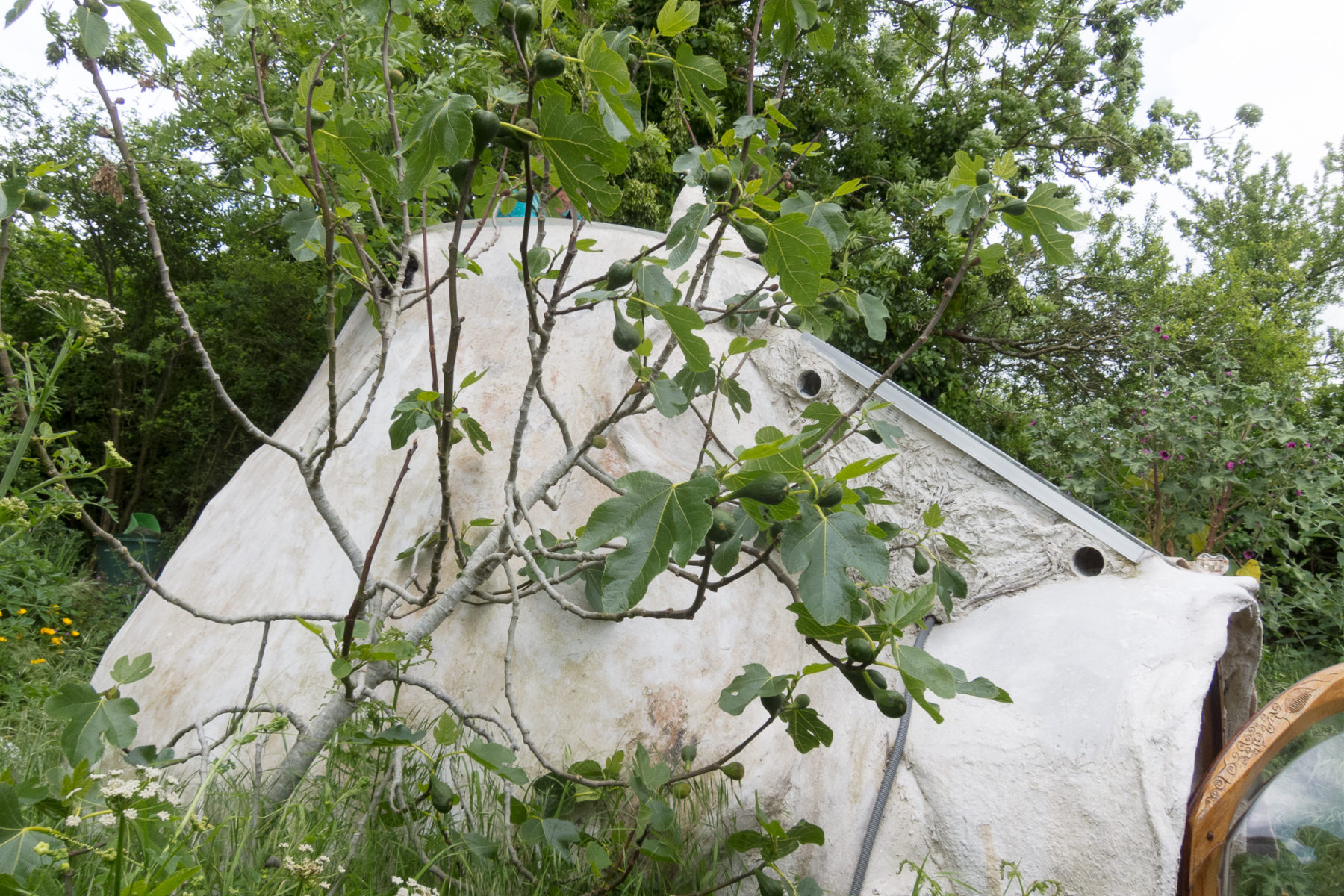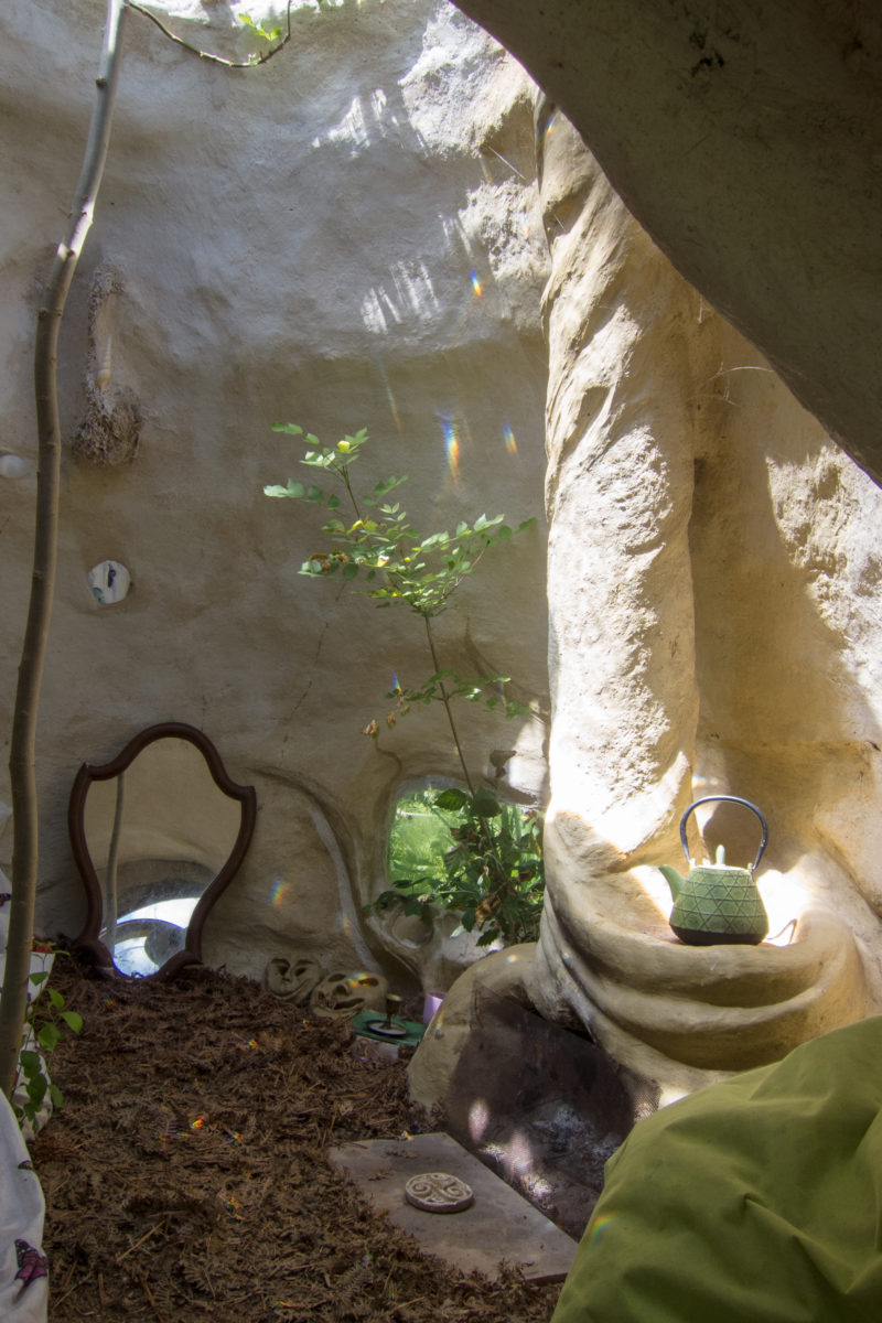 Après le stage que j’ai suivi en mai, voici une des kerterres construite par Evelyne Adam : la kerbulle, avec sa magnifique Bulle sur le dessus, qui éclaire particulièrement, mais aussi chauffe avec le soleil.